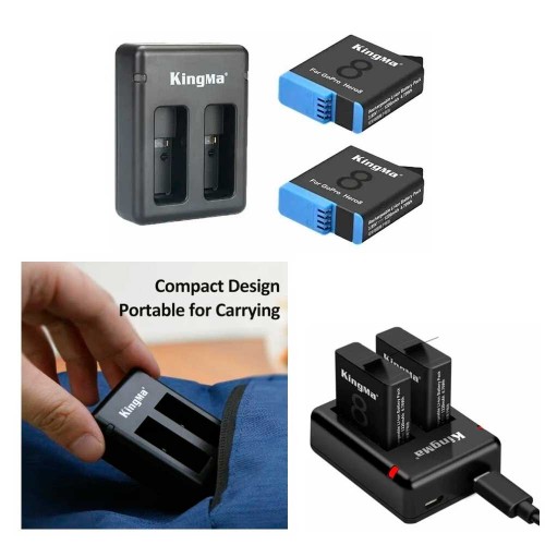 2 аккумулятора KingMa для GoPro 8,7,6,5 и зарядное устройство на два аккумулятора в комплекте.