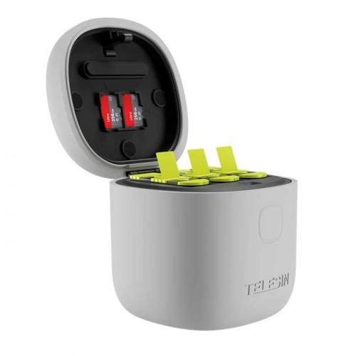 Влагозащищенная зарядка для GoPro HERO 12, 11, 10 и 9 Black на три аккумулятора покрыта силиконом. Водонепроницаемость зарядного устройства - IP54 (не боится дождевой воды, но не для погружения под воду!). Входящие в комплект (3 шт.) литий-ионные аккумуляторы - 1750 мАч (До 112 мин. съемки). Зарядное устройство питается от Micro USB 5V 2A, кабель USB Type-C в комплекте.