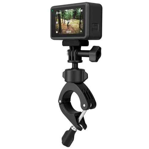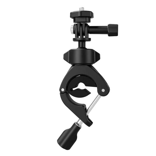 Зажим струбцина поворотная прищепка на цилиндрические поверхности для GoPro, DJI Osmo, Xiaomi YI 4 K, SJCAM SJ4000 и других экшн-камер и их аксессуаров - универсальное крепление. Зажим изготовлен из высококачественного материала. Крепление незаменимо на цилиндрических поверхностях, например руле велосипеда, мотоцикла а также на спортивном инвентаре и т.п. Струбцина оснащена прокладкой которая фиксирует более надежно крепление и не повреждает место крепления. На струбцину можно установить не только саму камеру, но и другие аксессуары вместо камеры, например фонарь или микрофон. Струбцина оснащена креплением 1/4" (дюйма) и 360 градусной шаровой головкой.