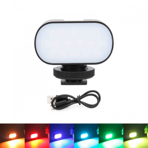 Легкий и компактный светодиодный мини фонарь с холодным башмаком и отверстием 1/4" для винта имеет несколько уровней регулировки яркости. Угол освещения: 120 °. Cемь цветов: красный/оранжевый/желтый/зеленый/голубой/синий/фиолетовый, создавая разные цвета для фотосъемки. Встроенный аккумулятор на 750 мАч, заряжается через стандартный интерфейс USB Type-C. Применяется для видеокамер, экшн-камер, фотоаппаратов и смартфонов.
