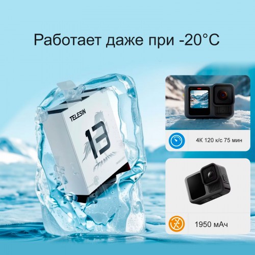 Морозостойкая аккумуляторная батарея Telesin Stamina Enduro для экшн камеры GoPro HERO 13 Black.