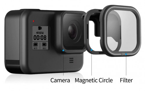 Комплект поляризационных фильтров для GoPro 8 (CPL) удаляет отражения от поверхностей таких как вода и стекло а также устраняет блики.