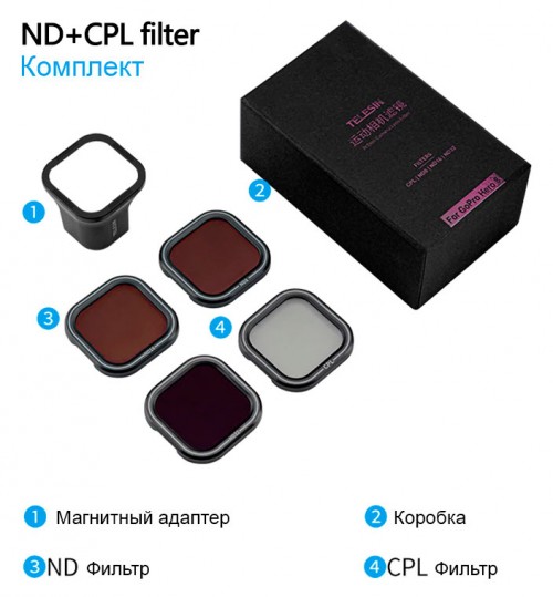 Фильтры для GoPro HERO 8 - CPL/ND8/ND16/ND32 - 4 шт