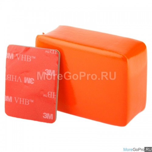 Поплавок клеится на заднюю крышку камеры GoPro с помощью клейкой ленты 3M (в комплекте)