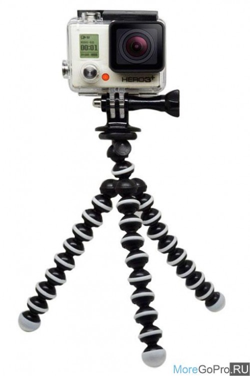 Гибкий мини-штатив (гориллапод) позволяет закрепить камеру на дереве, перилах, ограждениях и т.д.
