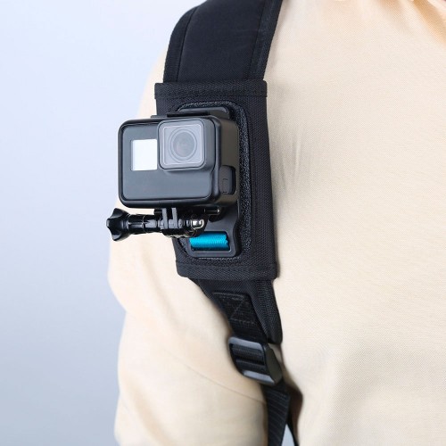 Крепление GoPro на рюкзак поворотной защелкой, точнее на лямку рюкзака очень удобно в использовании т.к. руки остаются свободными а съемка осуществляется от первого лица. Данный вид крепления будет полезен тем, кто носит рюкзак на прогулках и в путешествиях или катаетесь на велосипеде. Тип крепления - быстросъемный, а это значит, что вы всегда сможете быстро снять камеру с рюкзака и продолжить съемку с рук при необходимости. Благодаря данному креплению камера будет всегда под рукой и вы не упустите интересные кадры.