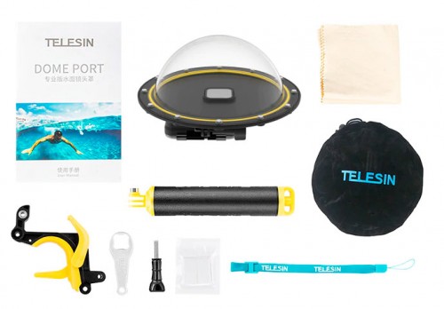 Полусфера водонепроницаемый купол для экшн-камеры GoPro HERO 9 Black и HERO 10 и 11 / 12 / 13 Black. Новый купол теперь без отверстия для фронтального экрана т.к он отражался в полусфере. В комплект входит поплавок который при необходимости можно использовать отдельно от купола. С помощью полусферы можно видеть одну часть кадра над водой и вторую часть под водой одновременно. Купол - Dome Port Telesin совместим с камерой GoPro 9, 10,11,12, 13 Black. Дополнительный аквабокс не требуется.