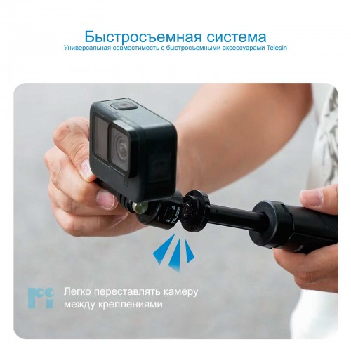 Быстросъемная система Quick Release Selfie Stick (Легко переставлять камеру между креплениями). Универсальная совместимость с быстросъемными аксессуарами Telesin.