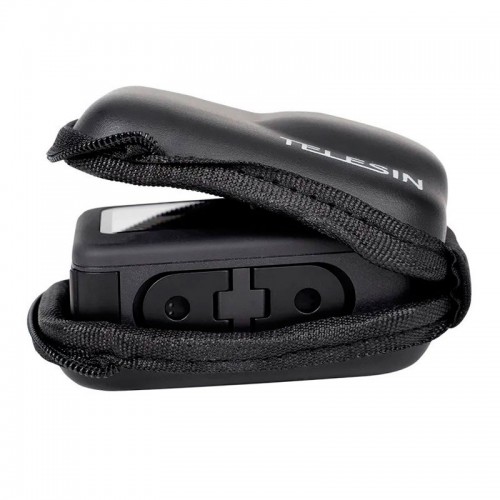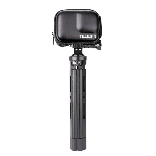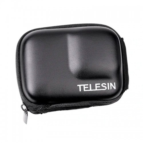 Стильный мини кейс для камеры GoPro от Telesin цвет черный. Кейс для хранения и транспортировки камеры GoPro или аналогичных по размеру экшн-камер. Внутренняя поверхность кейса мягкая, снаружи кейс покрыт плотным материалом, есть отверстие внизу для крепления камеры, можно установить кейс на закрепленную камеру на моноподе или штативе.