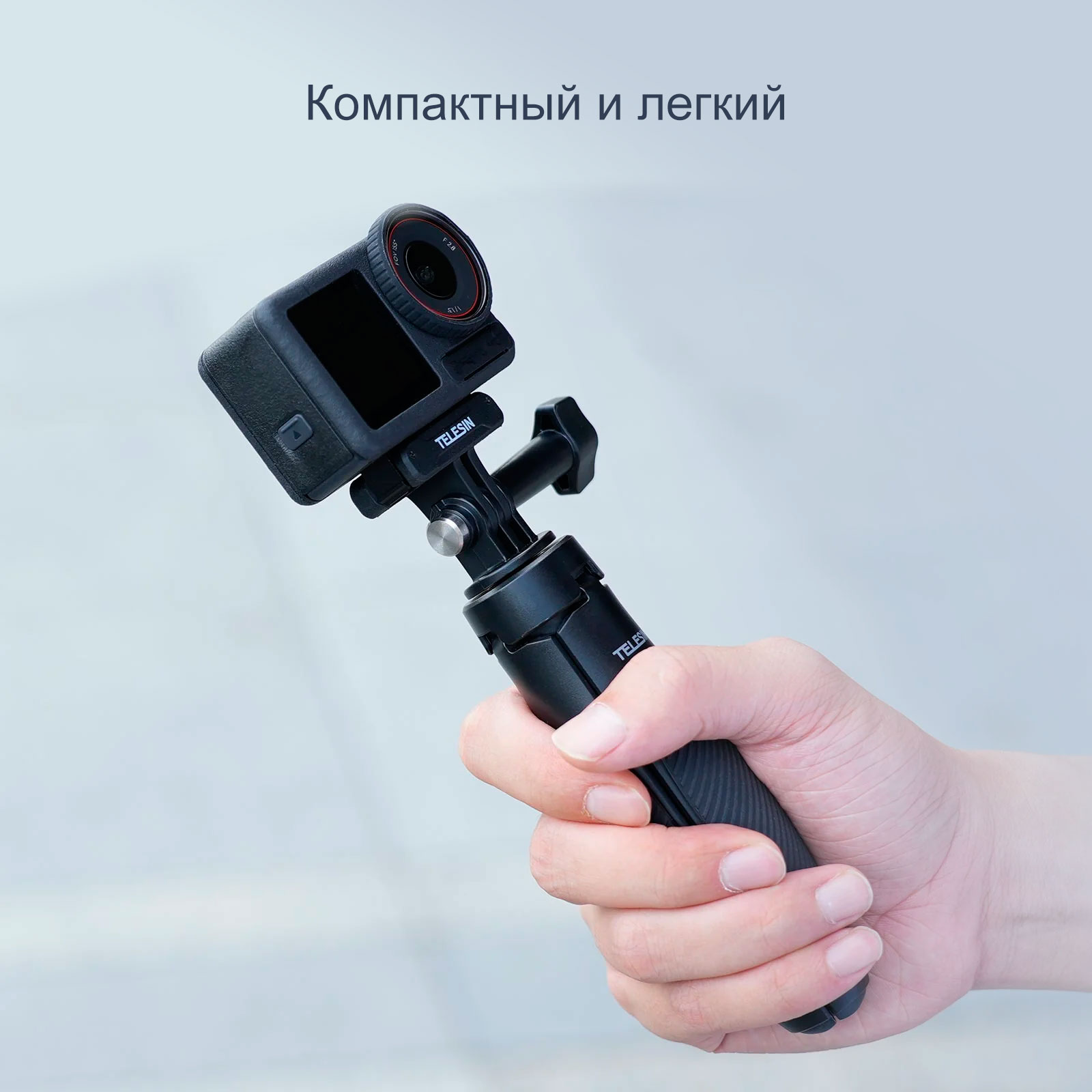 Мини монопод-штатив Telesin Selfie Stick 2.0 для GoPro, Dji, Xiaomi, SJCAM и других совместимых экшн-камер. Монопод раскладывается на длину до 40 см, в сложенном 15 см. Штатив можно использовать как мини-монопод или как просто ручку. Удобный и компактный, не займет много места при транспортировке и добавит комфорта в съемке. Для быстрой перестановки камеры и монопода на другие крепления, рекомендуем обратить внимание на Монопод Quick Release Selfie Stick