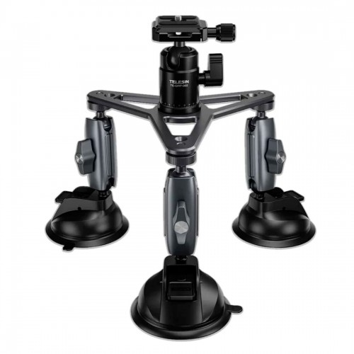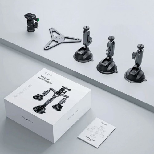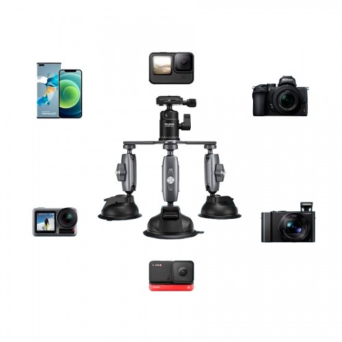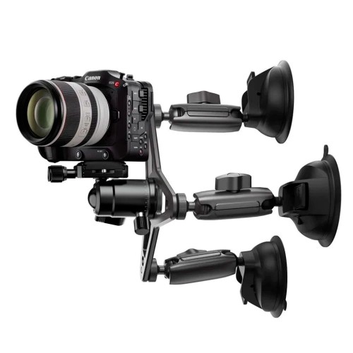 Тройная поворотная усиленная присоска для надежной фиксации любых аксессуаров весом до двух килограмм с креплением 1/4" (дюйма). Присоски можно использовать как отдельно, так и вместе, три независимые присоски с шаровыми кронштейнами и штативной головки установленной по центру алюминиевой платформы. Конструкция из авиационного алюминия.