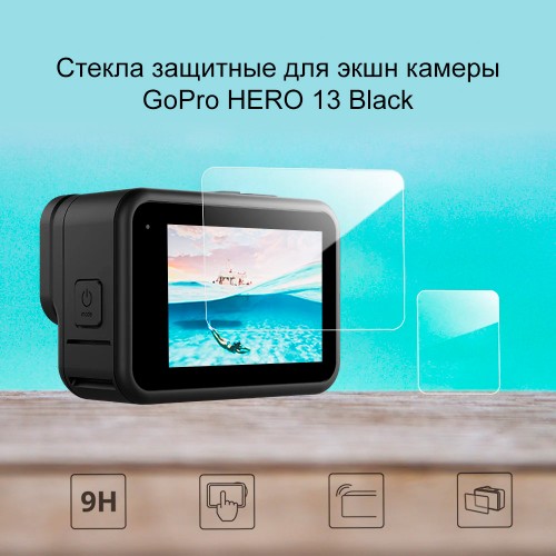 Стекла защитные для экшн камеры GoPro HERO 13 Black на линзу и два экрана. Высокая светопропускаемость стекла и защита от царапин и сколов.
