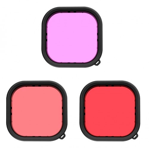 Комплект фильтров: красный, розовый и пурпурный для экшн камеры GoPro HERO 9 Black на Аквабокс от Telesin.