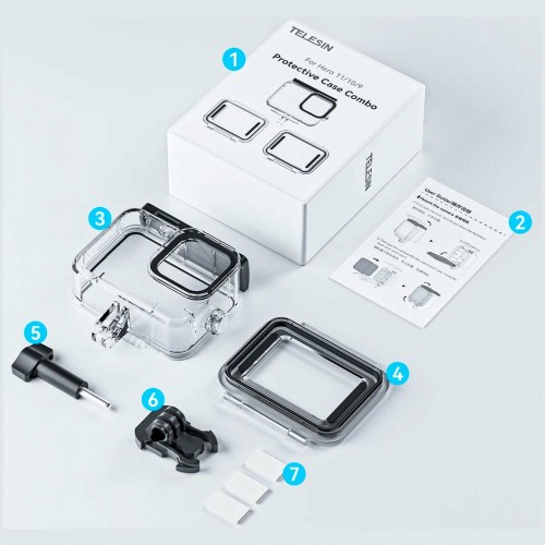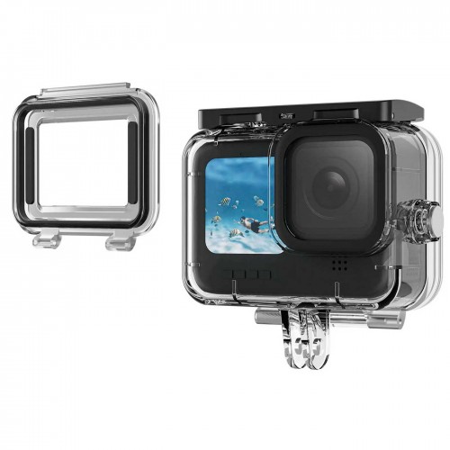 Водонепроницаемый защитный бокс и сенсорная задняя крышка для GoPro HERO 12 / 11/ 10 и 9 Black изготовлен из поликарбоната и нержавеющей стали. Защита от воды, пыли и ударов. Погружение до 45 метров. В комплекте крышка, аквабокс болт и защелка.