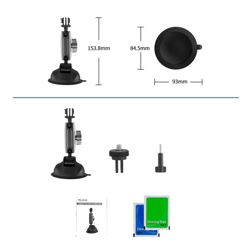 Присоска с поворотом на 360 ° - конструкция с двойной шаровой головкой позволяет свободно вращать камеру, универсальный винт крепления 1/4 дюйма позволит закрепить различные камеры, в комплекте переходник для установки камер GoPro. Присоска с мощным всасыванием изготовлена из высококачественного алюминиевого сплава и нержавеющей стали.