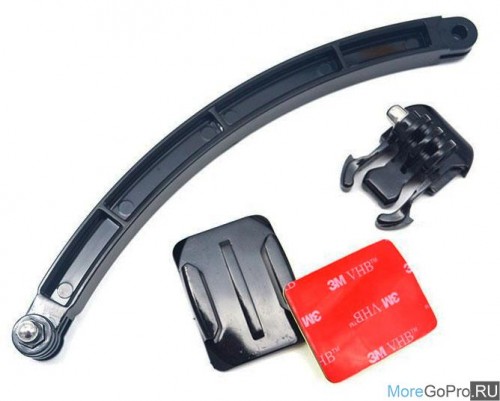 Удлинитель крепления - штанга (кронштейн), используется для крепления на камеры на шлем (горнолыжный или мотошлем). Набор крепится на изогнутую платформу быстросъемного крепления установленного на шлеме.